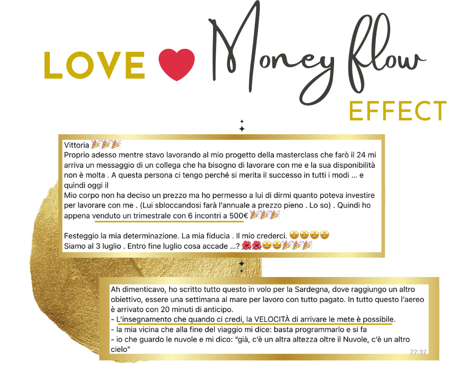 Proprio adesso mentre stavo lavorando al mio progetto della masterclass che farò il 24 mi arriva un messaggio di un collega che ha bisogno di lavorare con me. Festeggio la mia determinazione. La mia fiducia. Il mio crederci. E siamo al due giorni dall'inizio di LOVE ❤️Money Flow! Entro i 30 giorni chissà cosa accade!