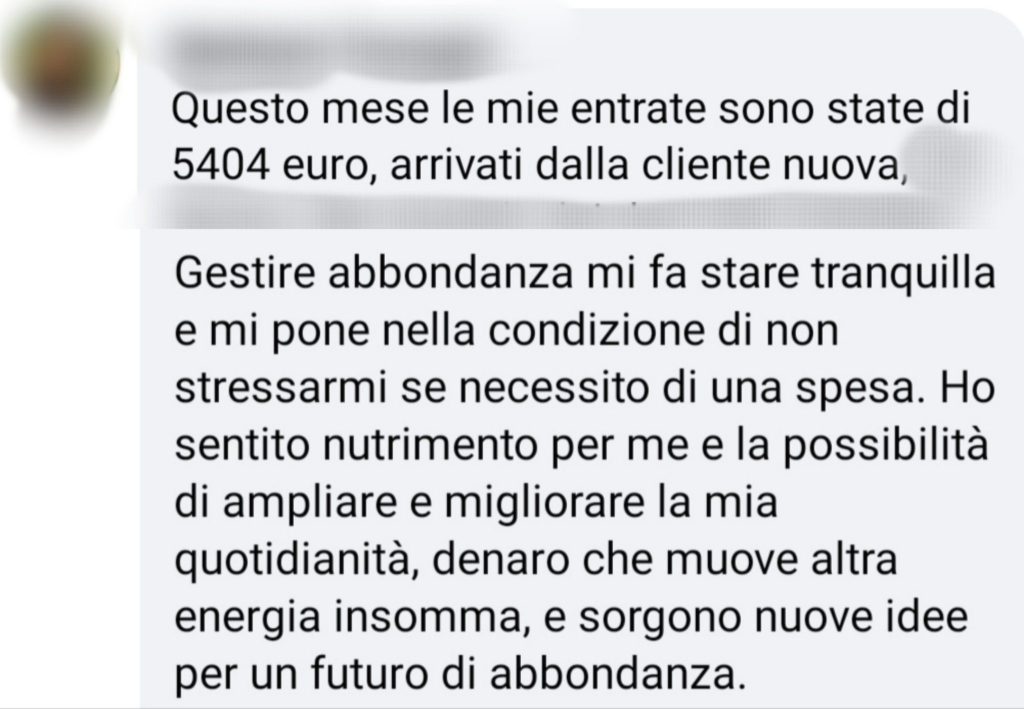 • Ti sei stancata di “lavorare di più per guadagnare di più” e desideri entrare in un nuovo paradigma di ricezione, dove il denaro fluisce con naturalezza.